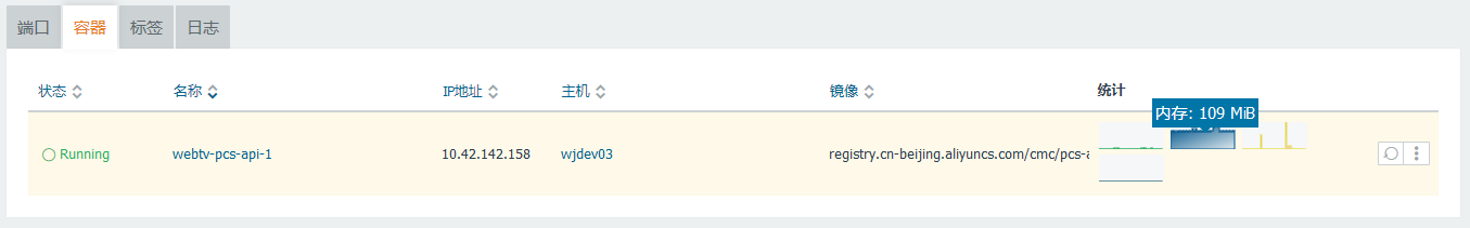 21、调整间隔时间,每5秒、每5秒、每60秒 运行一次命令,Docker 容器的 CPU:0.04%,内存:109MB,内存减少了 (292MB – 109MB) = 183MB 左右,并且,比之最初始的内存占用,内存减少了 (168MB – 109MB) = 59MB 左右,已经达到内存占用减少的预期,如图8