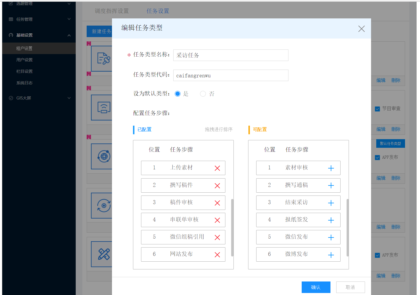 1、编辑与更新租户的任务类型与步骤设置的 UI 在接口实现后才设计完毕。上一版本的实现:http://www.shuijingwanwq.com/2019/11/14/3605/ ,在上一版本中,一个接口中同时实现:任务类型可(添加、删除、重命名其名称、排序),任务步骤可从 18 个任务步骤列表中选择(添加、删除、勾选、不勾选、排序)。