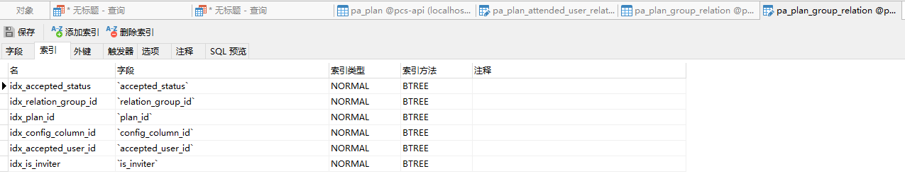 7、添加索引:idx_group_id、idx_is_not_isolated 后,pa_plan 表的索引如图7