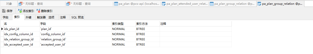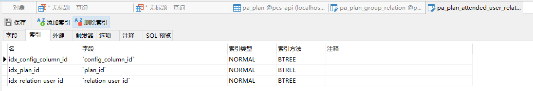 (3)pa_plan_attended_user_relation 表的索引,添加索引:idx_config_column_id、idx_plan_id、idx_relation_user_id