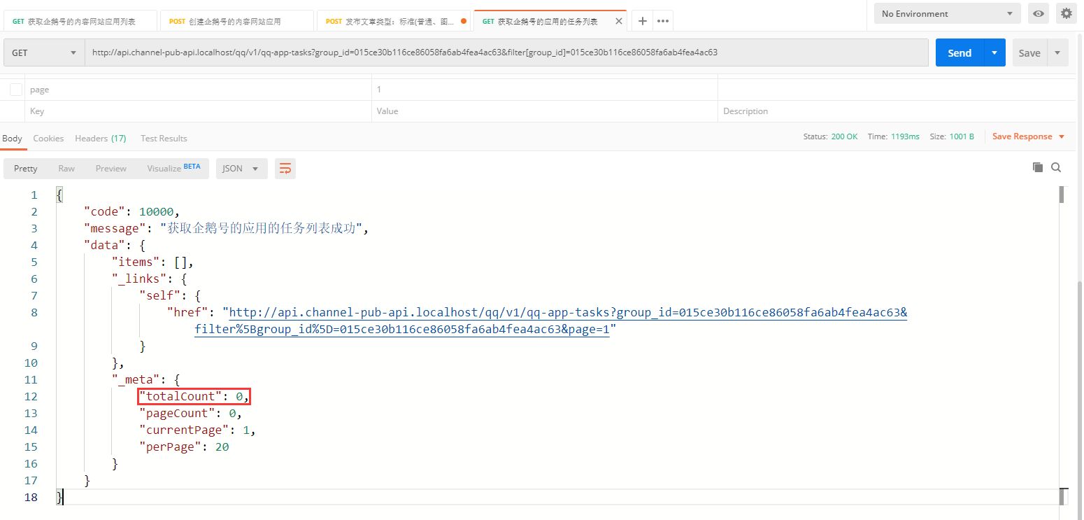 1、获取企鹅号的应用的任务列表,列表为空,如图1