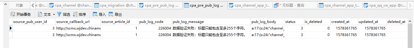 6、如何来实现即使入库失败,也能够查询到发布记录呢?前提是必须要保证请求的数据入库成功,但是理论上是无法实现的。比如说:请求数据中的标题长度超出表:cpa_qq_article 的字段:title 的长度,即使在执行插入 SQL 之前不做数据验证,SQL 语句也会执行失败,进而回滚。如图6