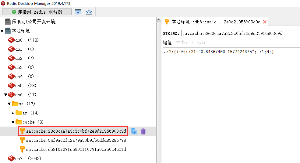 3、在开启 Schema 缓存后,查看 Redis,键名:sa:cache:84f9ac2fc2a79a80b91b6ddd83286798,已经存在 Schema 缓存数据,如图1