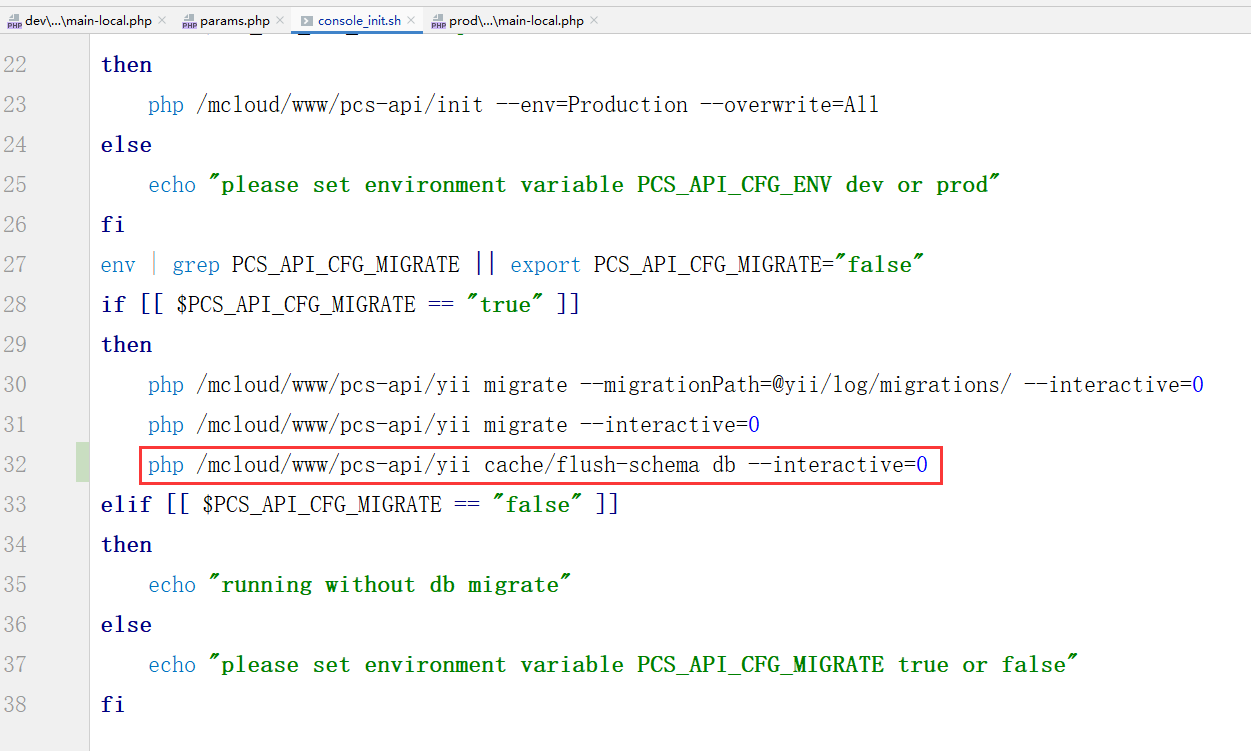 9、在 Docker 部署时,在容器升级时,执行了数据库迁移命令后,再执行清除给定连接组件的数据库表结构缓存的命令。编辑 build/c_files/config/init/console_init.sh,如图6