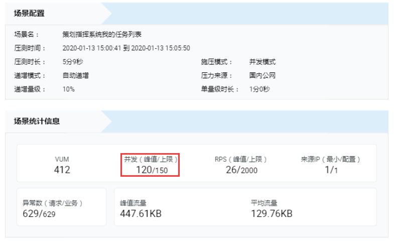 11、同一个接口(查询),在开启 Schema 缓存前,其性能测试结果,并发(峰值/上限):120/150,如图8