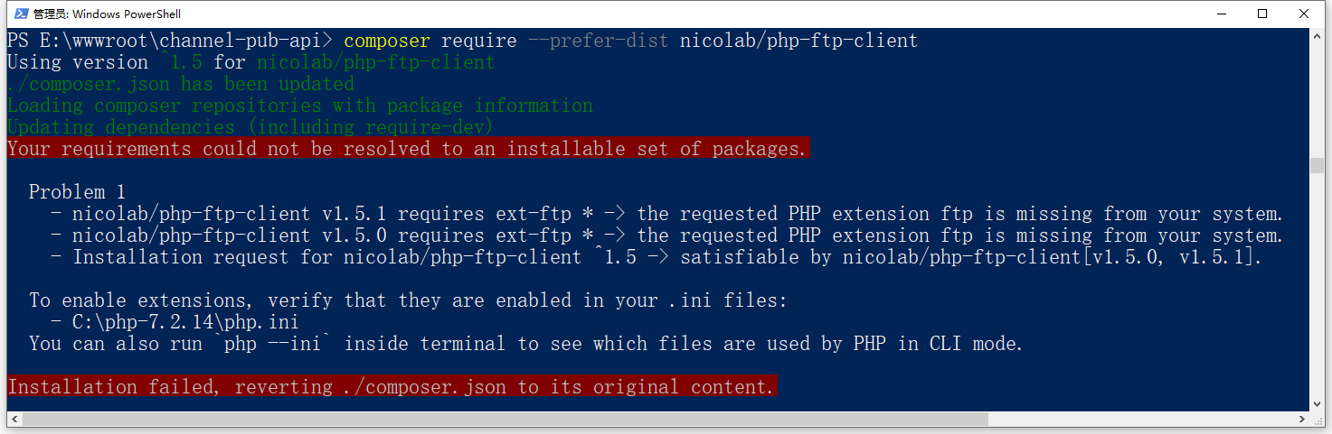 Composer 安装:nicolabphp-ftp-client 时报错:the requested PHP extension ftp is missing from your system 的解决