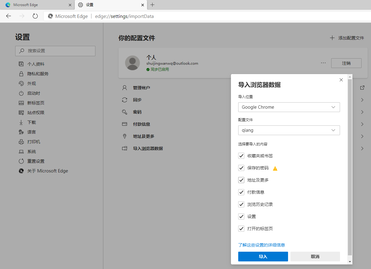 4、从 Google Chrome 中导入浏览器数据,如图4