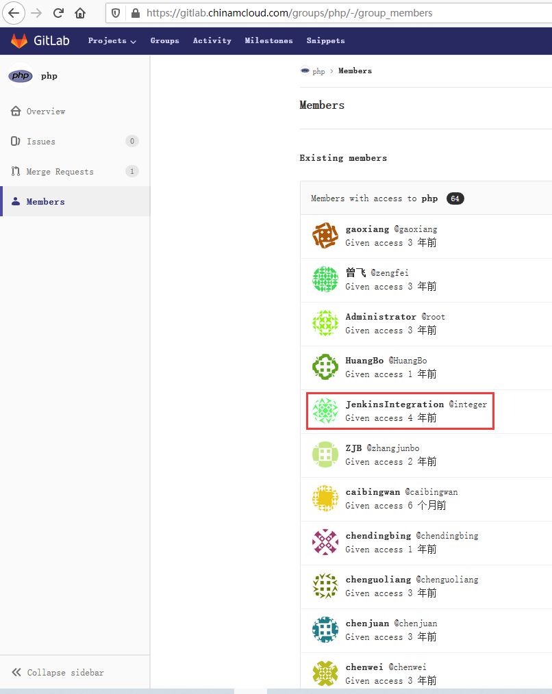 3、分析组 php 下的用户列表,存在用户:JenkinsIntegration,如图2