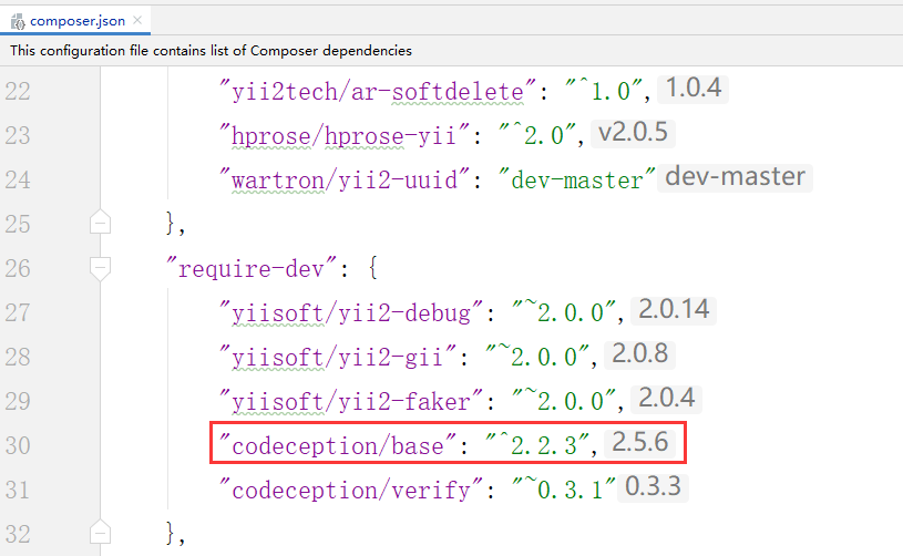 3、在本地环境中,composer.json 仍然依赖:codeception/base,如图3