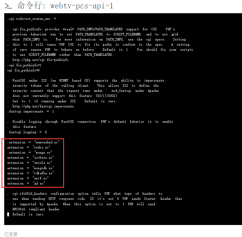 ;extension = "memcached.so" extension = "redis.so" ;extension = "mongo.so" extension = "sockets.so" extension = "swoole.so" extension = "mongodb.so" extension = "rdkafka.so" extension = "exif.so"