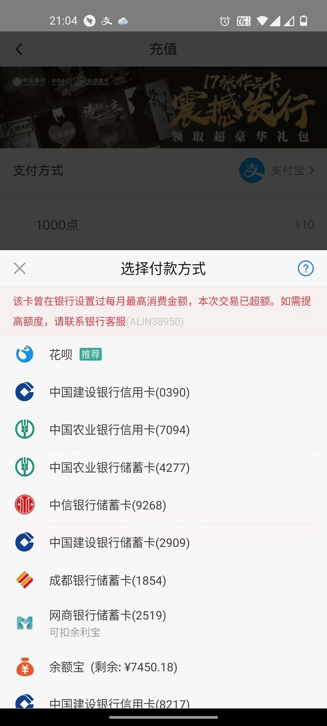 在使用工商银行信用卡在线支付时失败:该卡曾在银行设置过每月最高消费金额,本次交易已超额。如需提高额度,请联系银行客服 的解决