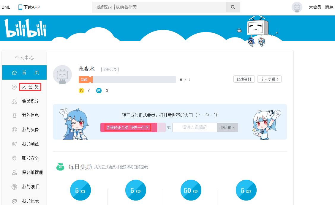 4、当前发布稿件的帐号等级:大会员。距离转正会员 还差一点点!。如图4