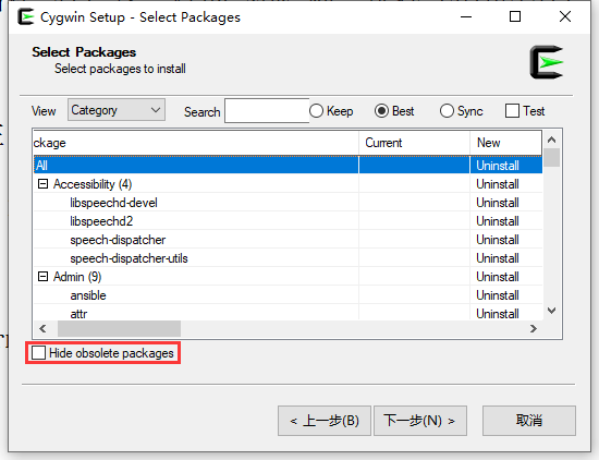 13、决定再次卸载。取消勾选 Hide obsoleete packages。即显示已经过时的软件包。重复第 10 步骤。如图13