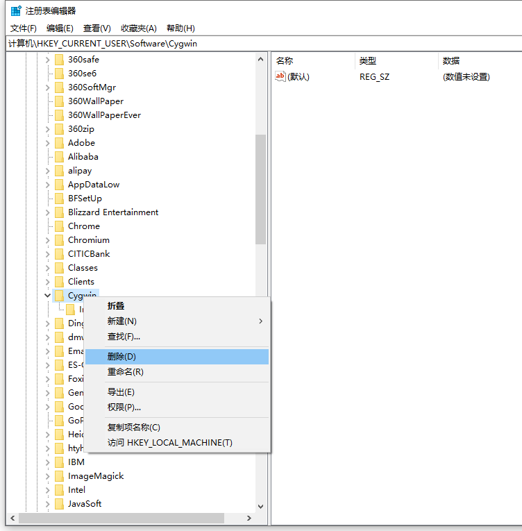 在 Windows 10 64 位中彻底卸载 Cygwin