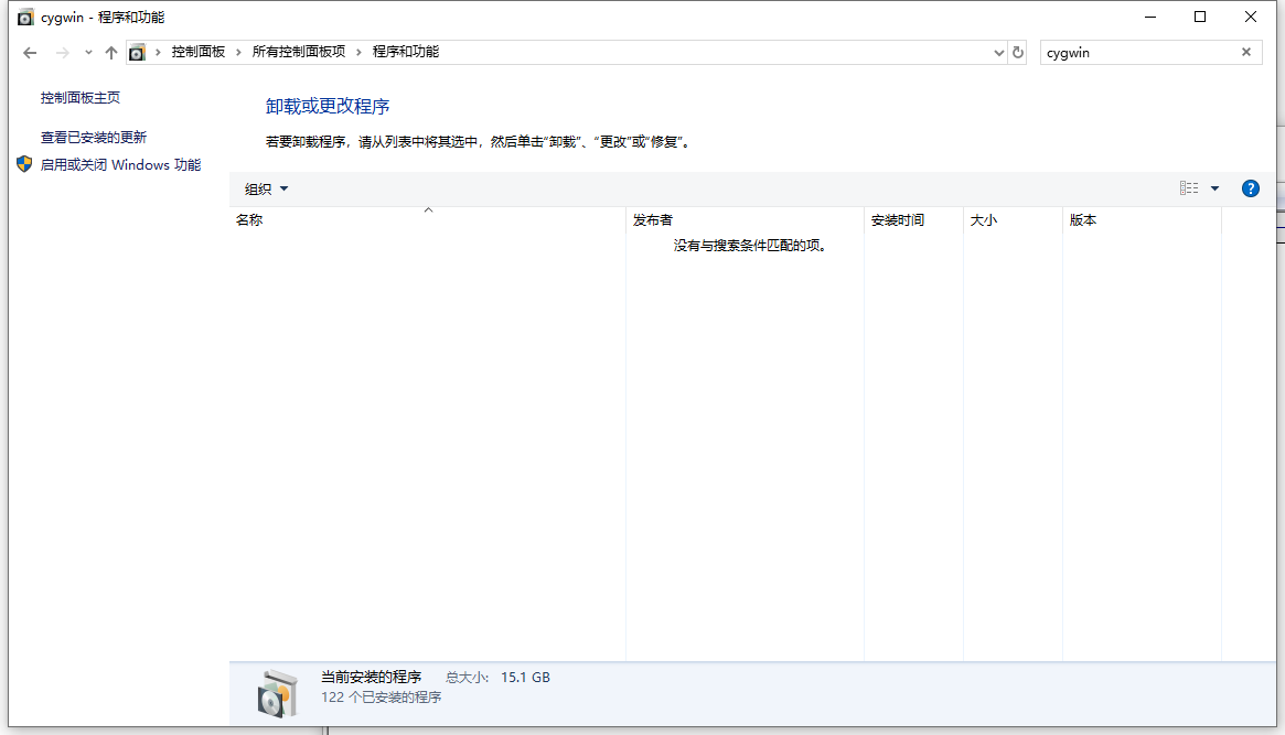 3、搜索程序和功能:cygwin,结果为空。如图3