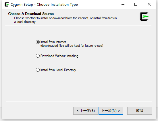 5、选择第 1 项,从 Intemet 安装(下载的文件将保留以备将来使用)。如果之前有下载,且有保留,建议选择第 3 项,从本地目录安装。如图5