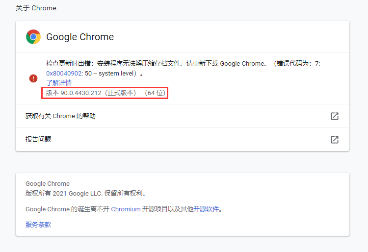 4、查看浏览器版本:版本 90.0.4430.212(正式版本) (64 位)。如图4