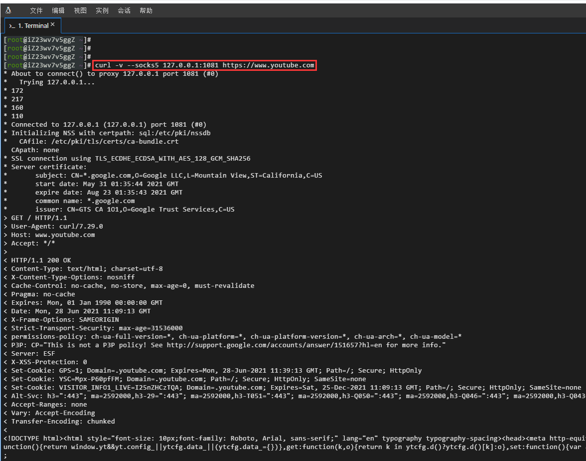 在阿里云大陆 ECS 的 CentOS 7.x 中安装 V2Ray 后 HTTP 请求 Google、YouTube 的实现