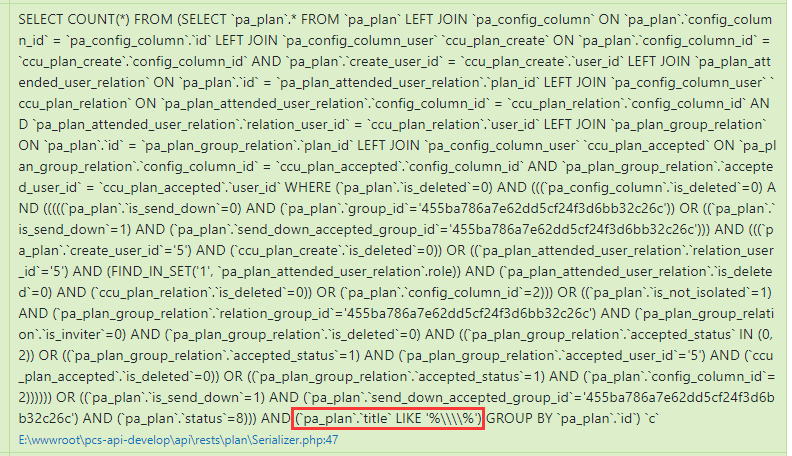 ![请求参数:filter[and][0][or][0][title][like]=\,生成 SQL 如下,查找结果为空](https://www.shuijingwanwq.com/wp-content/uploads/2021/07/1.png)
