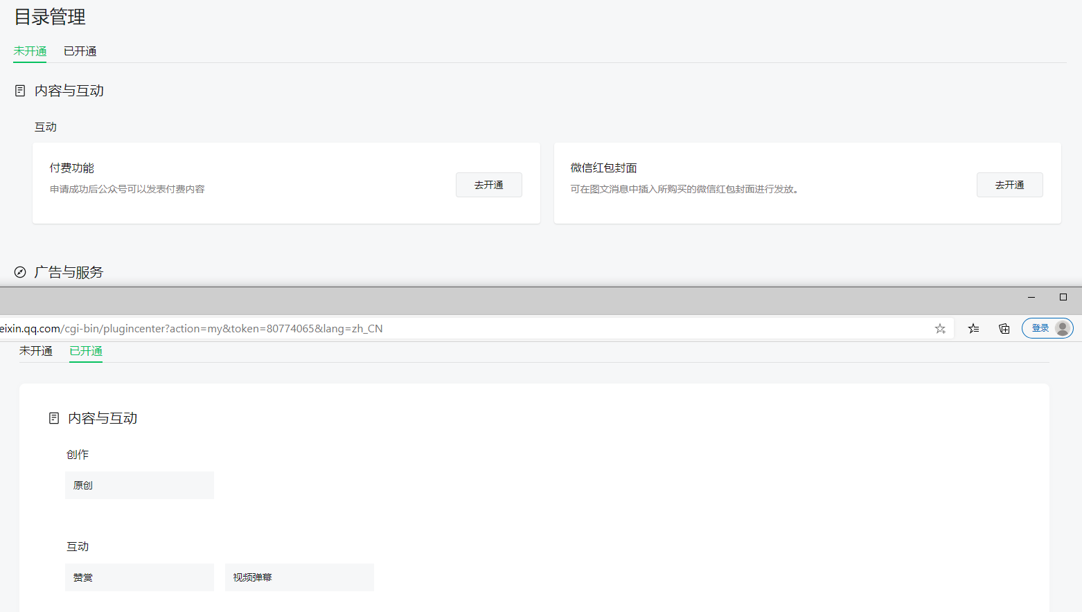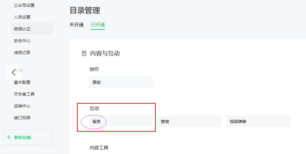 4、发现报错的公众号,已开通页面中不存在:互动 – 留言 功能。未开通页面中也不存在:互动 – 留言 功能。如图4