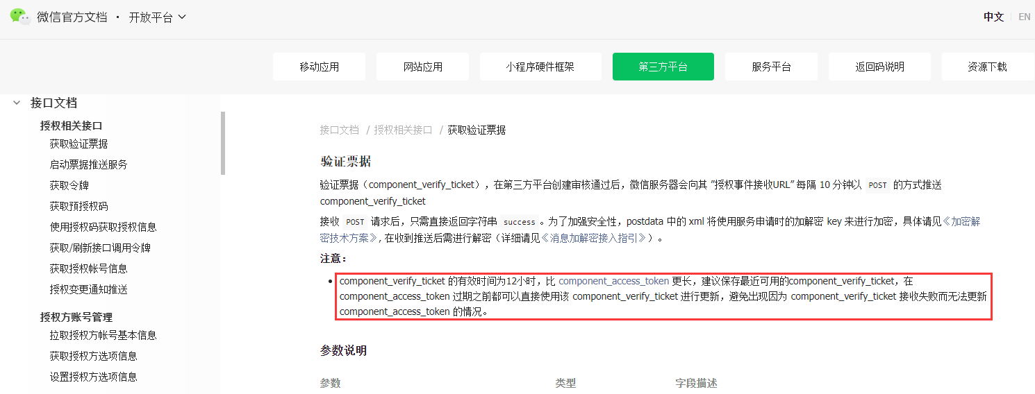 1、查看网址:https://developers.weixin.qq.com/doc/oplatform/Third-party_Platforms/2.0/api/Before_Develop/creat_token.html 。微信服务器 每隔 10 分钟会向第三方的消息接收地址推送一次 component_verify_ticket,用于获取第三方平台接口调用凭据。在接口:接收验证票据(接收微信服务器推送) 实现中,获取与缓存第三方平台令牌、获取与缓存第三方平台预授权码。