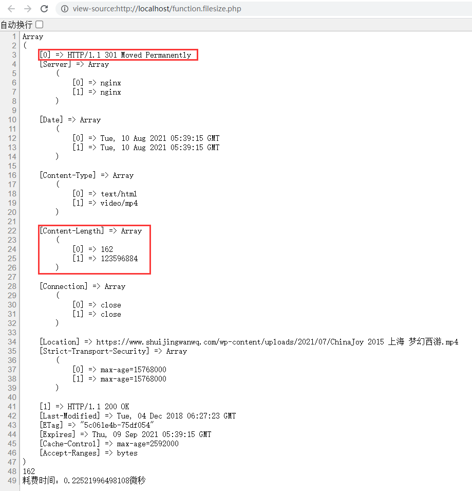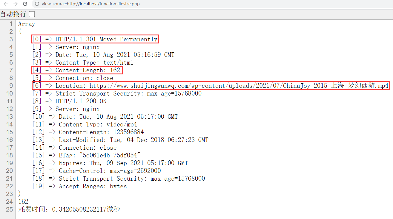 1、参考网址:https://www.shuijingwanwq.com/2021/08/10/5155/ 。在 PHP 中基于 HTTP 协议检测文件的大小(即不下载文件的情况下,获取远程文件的大小),之前的实现,使用文件系统函数 fopen — 打开文件或者 URL。如果文件的网址需要 301 跳转,则不能够获取到文件的真实大小。如图1