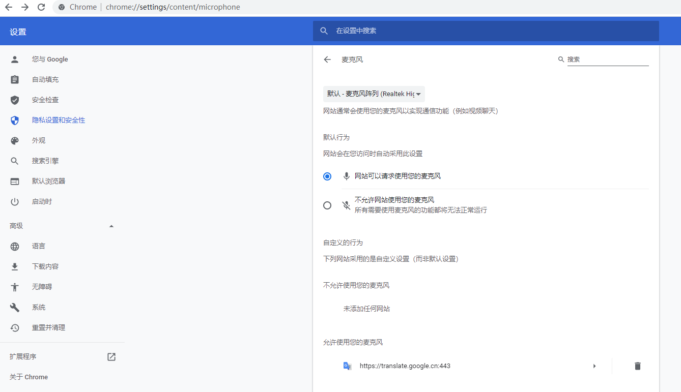 4、在 Chrome 浏览器中也无法使用麦克风。查看相关设置。如图4