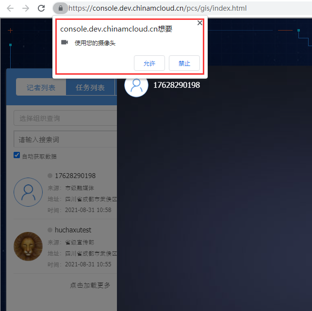 7、在重新加载后,浏览器提示网站想要使用您的摄像头,点击允许。如图7