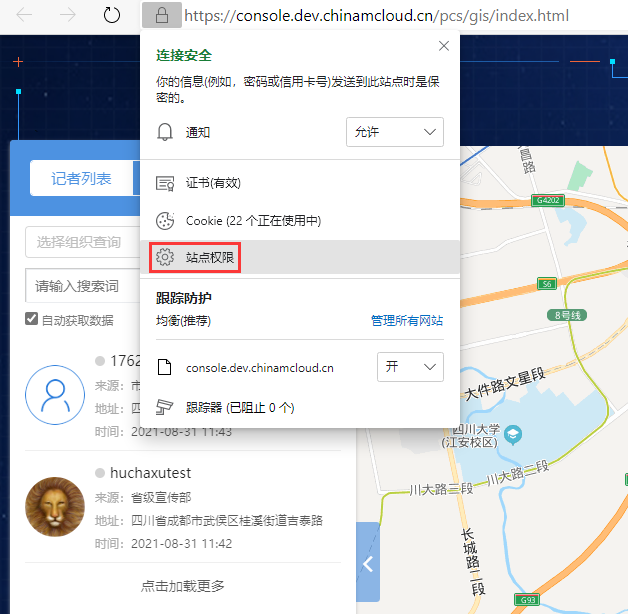 10、站点权限 / https://console.dev.chinamcloud.cn – 允许。如图10