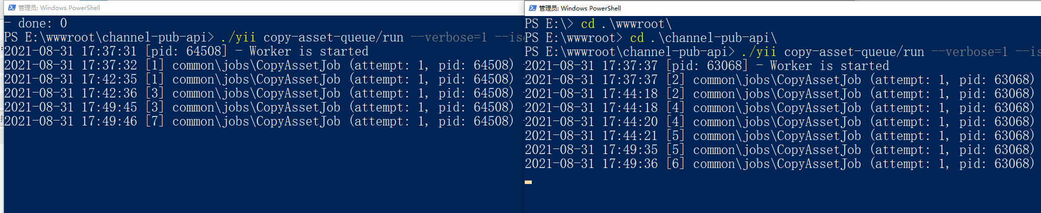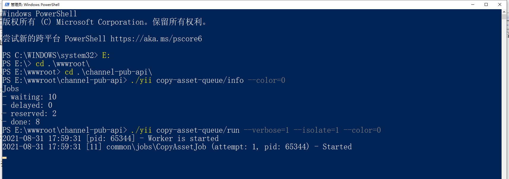 在本地环境中,测试队列(Yii2 队列扩展,queue/run 命令)模式下的并行运行
