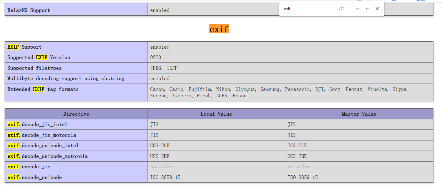 2、exif_read_data — 从一个图片文件中读取 EXIF 头信息。是一个 Exif 函数,依赖于扩展:Exif。查看 phpinfo 。未安装扩展:Exif。如图2