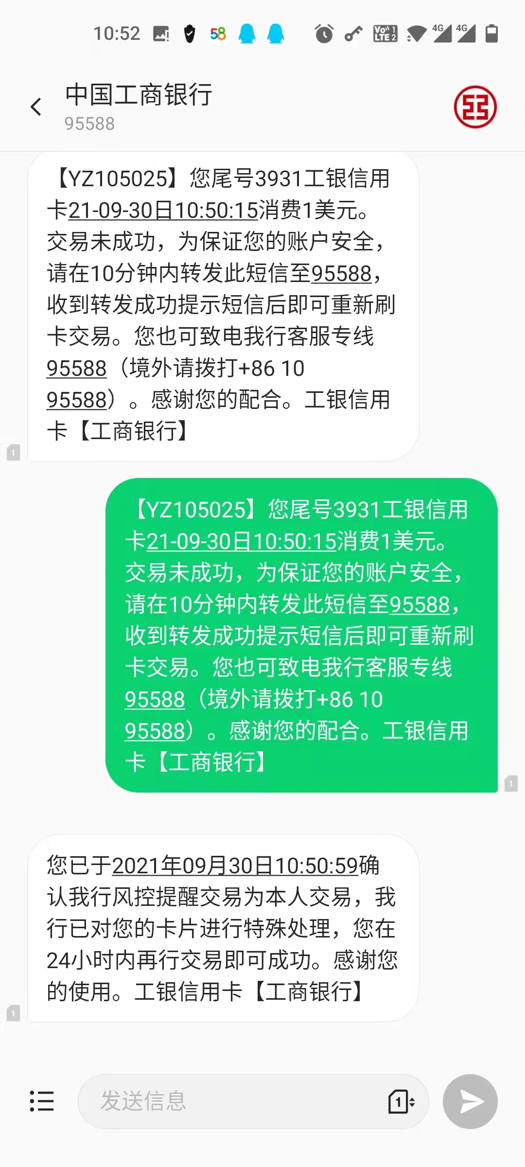 6、添加信用卡或借记卡时,必须为 VISA。然后可能会被银行风控,需要转发短信,才能够添加成功。如图4