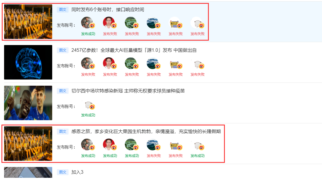 9、确认这 3 个微博帐号是否在失败2条之前就已经发布过同样的头条文章了。确认是同样内容的文章已经发布成功过。