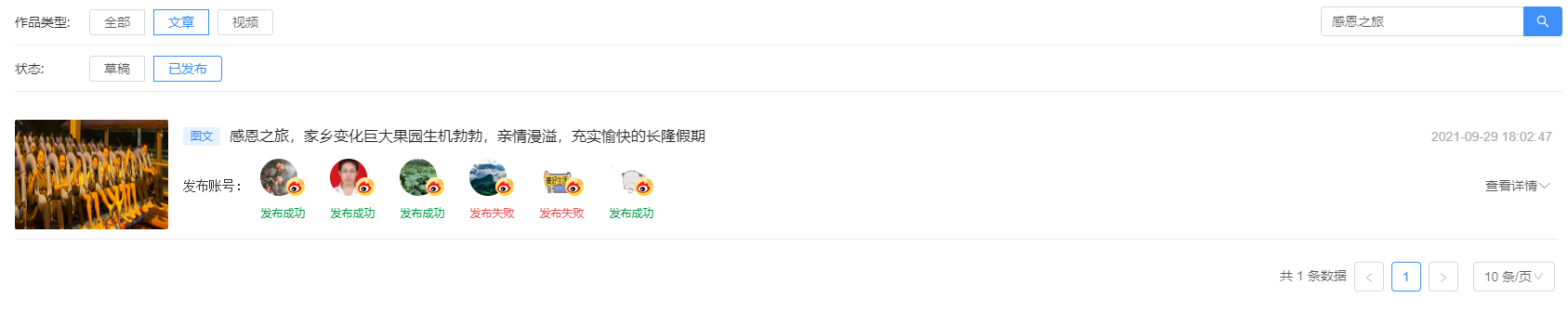 页面上显示的效果:后面 5 个帐号发布失败,但是微博 APP 会发布文章成功。因此,是请求方的 Bug。修复为 总计 6 条记录,每个帐号 1 条记录。
