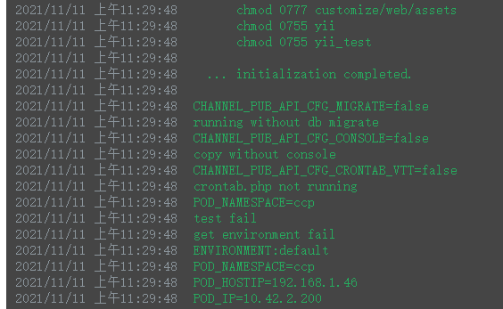 2、当 Rancher 环境变量,CHANNEL_PUB_API_CFG_MIGRATE=false 时,容器启动成功。如图2