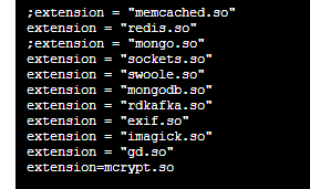 ;extension = "memcached.so" extension = "redis.so" ;extension = "mongo.so" extension = "sockets.so" extension = "swoole.so" extension = "mongodb.so" extension = "rdkafka.so" extension = "exif.so" extension = "imagick.so" extension = "gd.so" extension=mcrypt.so