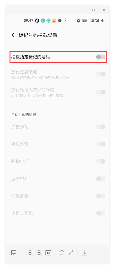 5、再次登录,需要其他设备验证或者当前设备电话接听验证,选择电话接听验证,第一次未接听到,原因在于被来电拦截标记为广告推销电话,自动拦截掉了。在通话记录 – 拦截记录 – 来电拦截设置 – 来电拦截 – 拦截指定标记的号码 – 关闭。如图5