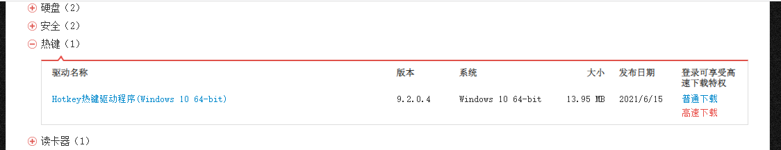 5、展开 热键 ,显示:Hotkey热键驱动程序(Windows 10 64-bit),下载并安装。文件名:SIhotkey-r0yvu35w.exe。如图4