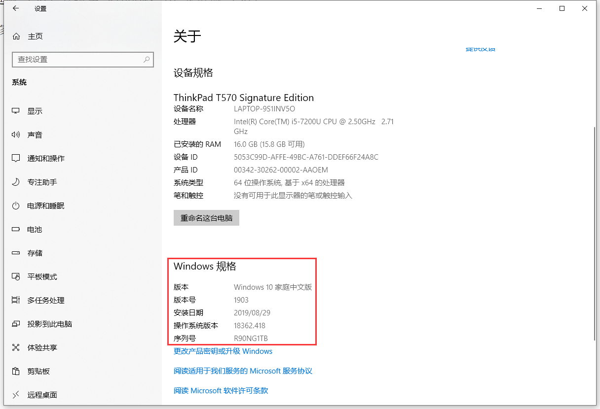 1、当前操作系统:Windows 10 家庭版,版本号:1903,操作系统版本:18362.418。如图1