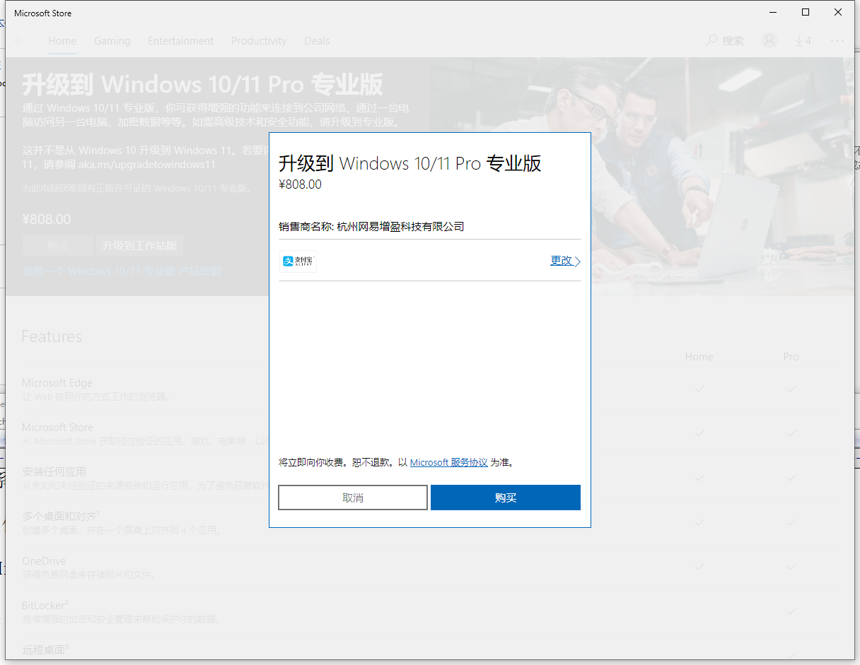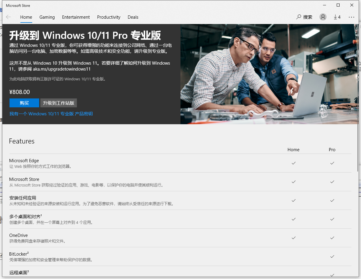 3、升级至 Windows 10/11 Pro 专业版。购买。如图3