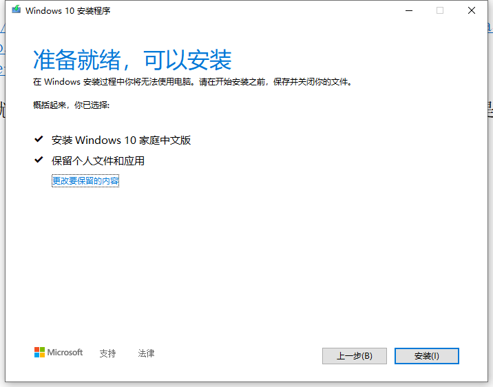 9、运行:MediaCreationTool21H2.exe 。准备就绪,可以安装。但是,安装 Windows 10 家庭中文版,不是预期的专业版。此方案不可行。如图9