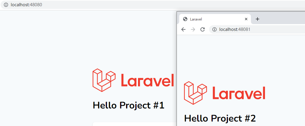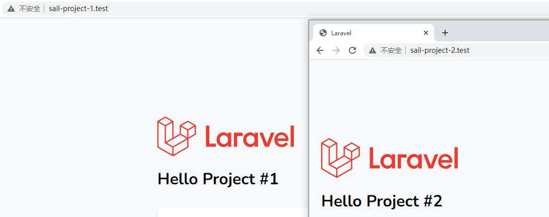 15、分别打开:http://sail-project-1.test 、http://sail-project-2.test ,如图12