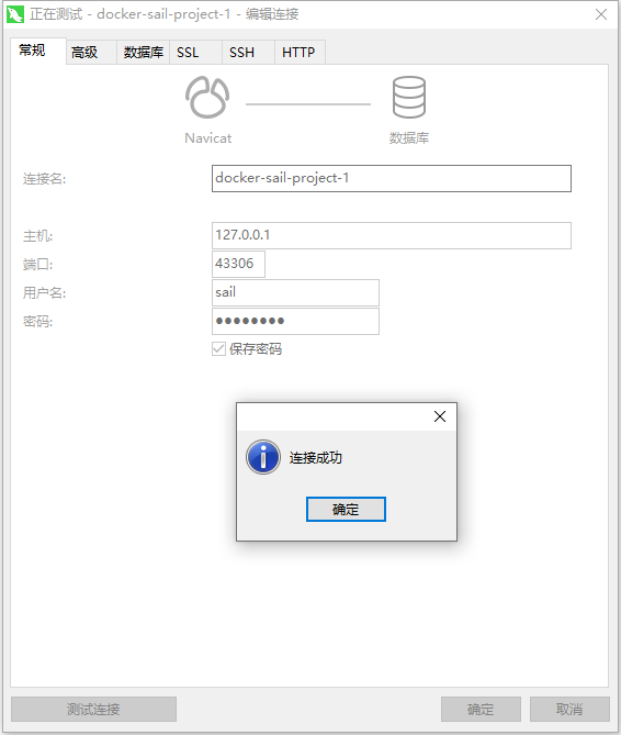 16、从本地宿主机连接到 MySQL 数据库,可以直接通过 127.0.0.1 和 43306 端口连接到 MySQL 数据库容器。如图13