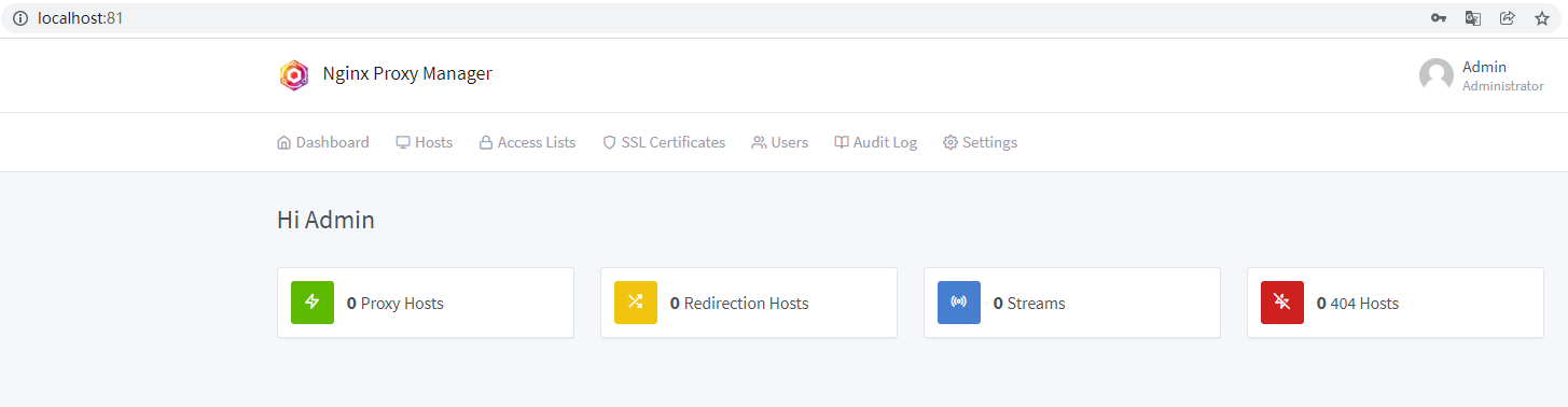 5、看到最后提示为绿色,表示容器创建成功。现在打开网址:http://localhost:81 。邮箱:admin@example.com 密码:changeme 。登录成功,如图5