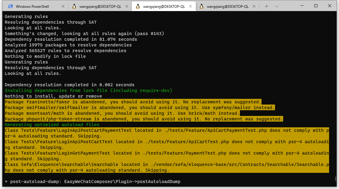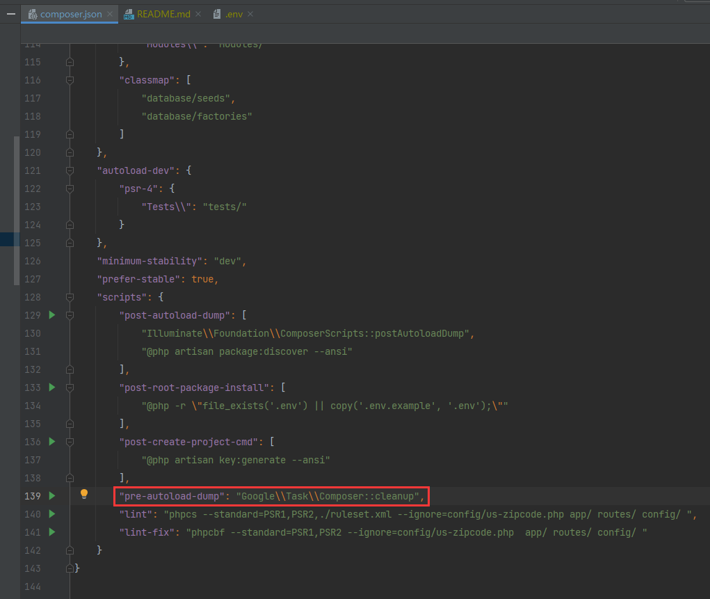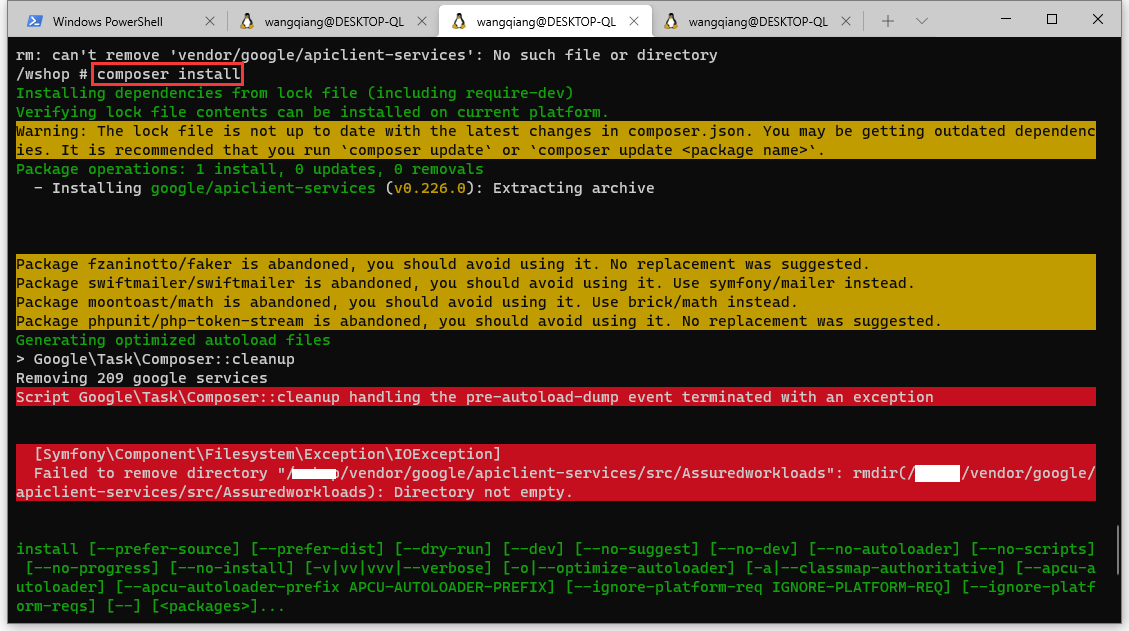 执行命令:composer install 时,报错:Script Google\Task\Composer::cleanup handling the pre-autoload-dump event terminated with an exception