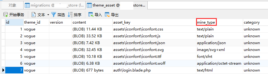6、查看数据表,字段名已经变更为:mime_type。如图5