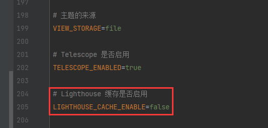 3、参考 Schema caching:https://lighthouse-php.com/4/performance/schema-caching.html ,建议在生产模式下启用缓存。现在为本地模式,决定禁用缓存,编辑 .env 文件,定义变量:LIGHTHOUSE_CACHE_ENABLE=fasle。如图2