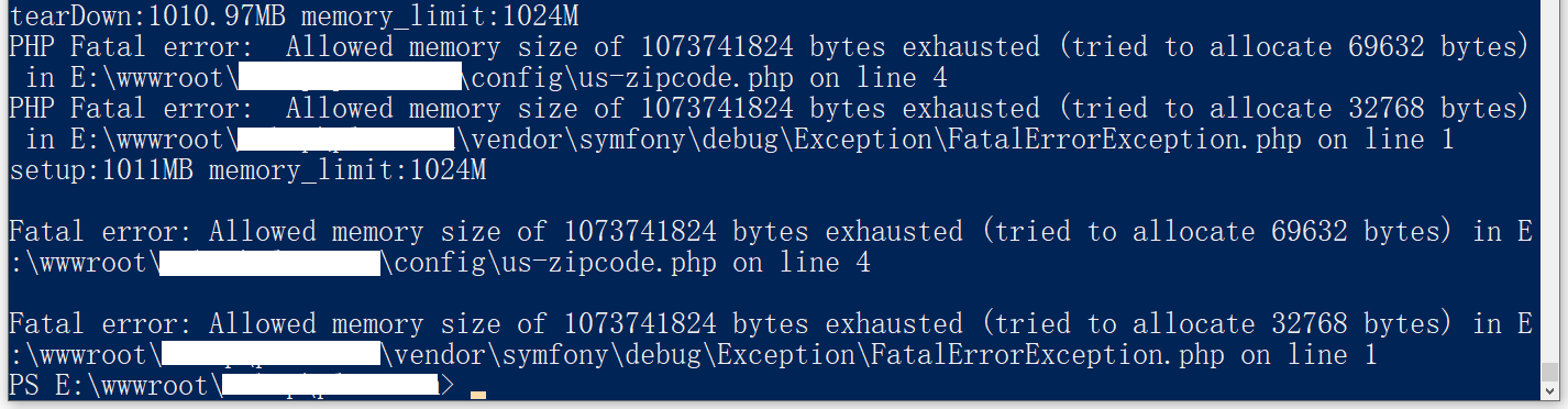 1、在 Laravel 6 中运行 phpunit 时报错:PHP Fatal error: Allowed memory size of 1073741824 bytes exhausted (tried to allocate 69632 bytes)。如图1