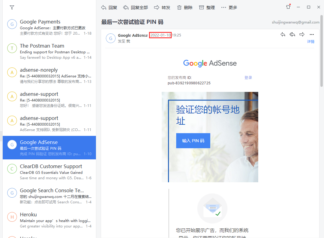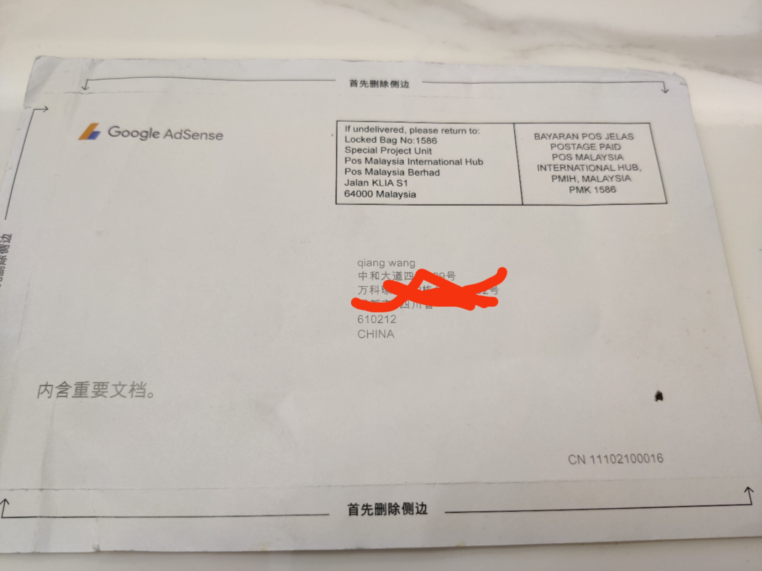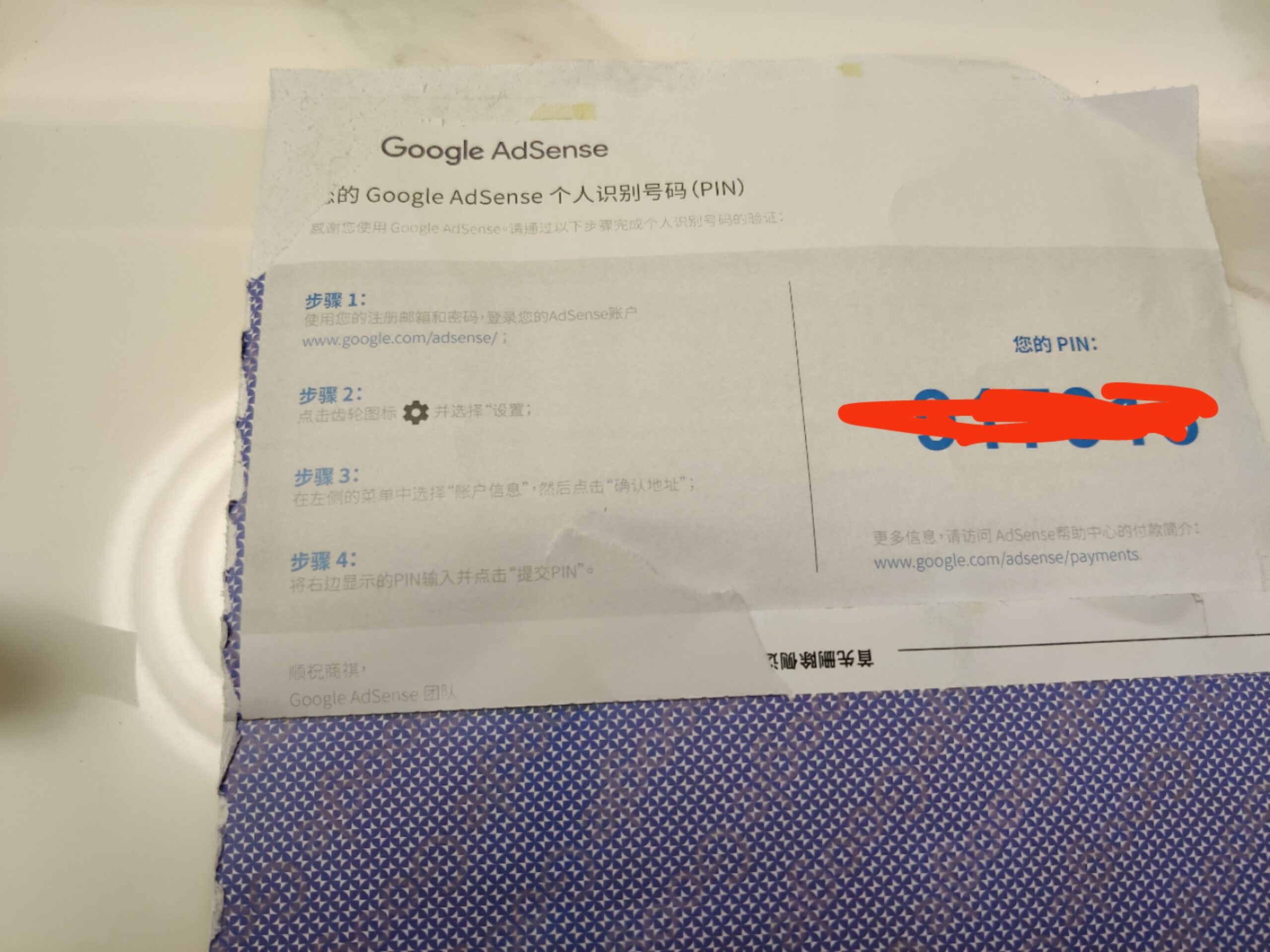 收到邮寄的 Google Adsense 个人识别码(PIN 码) 信件