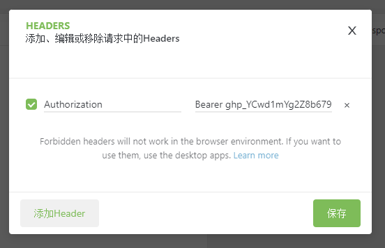 10、在 Key(密钥)字段中,输入 Authorization。 在 Value(值)字段中,输入 Bearer <token>,其中 <token> 是您生成的 OAuth 令牌。如图10